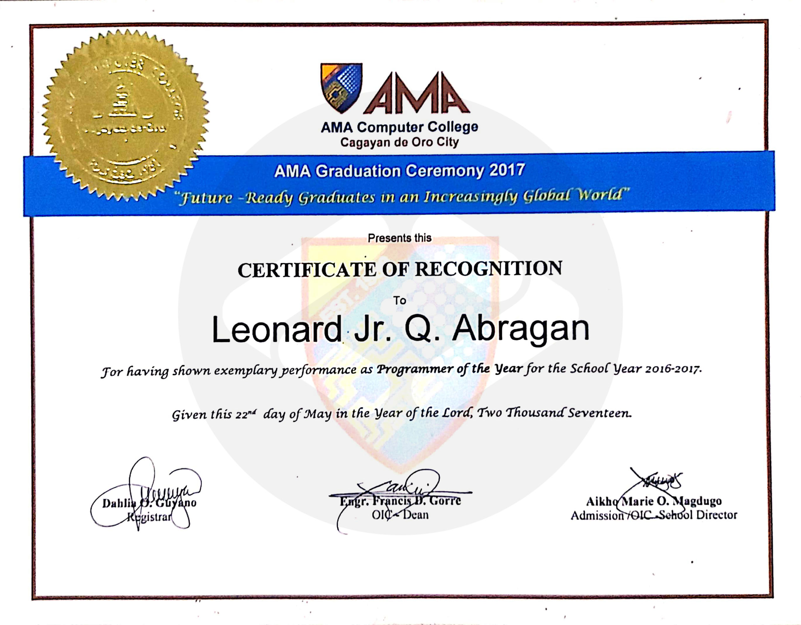 Earned an Associate’s Degree in software development. Recognized with the award for outstanding performance, demonstrating strong skills in application development, coding practices, and problem-solving in real-world programming tasks.